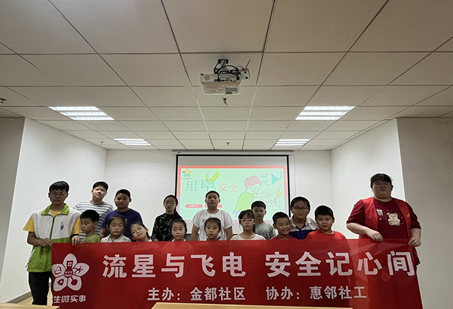 夏季天气闷热、雷电事故高发,为树立儿童安全用电意识,牢记应急处理办法,进一步保障社区儿童生活中的用电安全。金都社区团总支联合惠邻社工于7月10日上午开展“流星与飞电,安全记心间”主题活动。