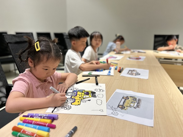 一课一主题的少儿绘画课堂上,青年志愿者细致讲述了绘画知识和小技巧,并鼓励孩子们大胆创作,孩子们化身为小小画家,时而认真思考,时而拿起画笔低头作画,通过运用点、线、面,画出了精彩的图画,并涂上自己喜欢的颜色,一幅幅美丽的画卷伴随着孩子们的笑脸缓缓展开。伴着蝉鸣清风,通过设立异彩纷呈的“课程站点”,激发孩子们的学习热情和创造力。