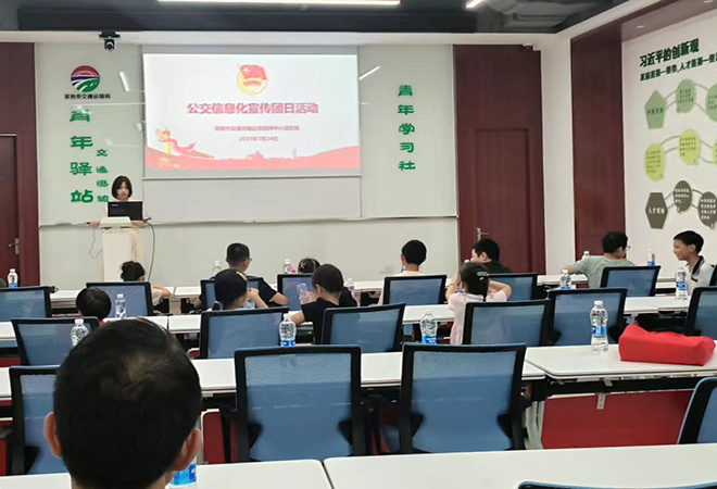 活动开始,邀请交通运输应急指挥及智慧交通运用平台的建设方现场进行平台展示。然后由团支部书记毛明珠同志在青年驿站进行课堂授课,对公交信息化建设情况和应急指挥中心职能进行介绍,并向参观的学生普及了交通应急小知识。