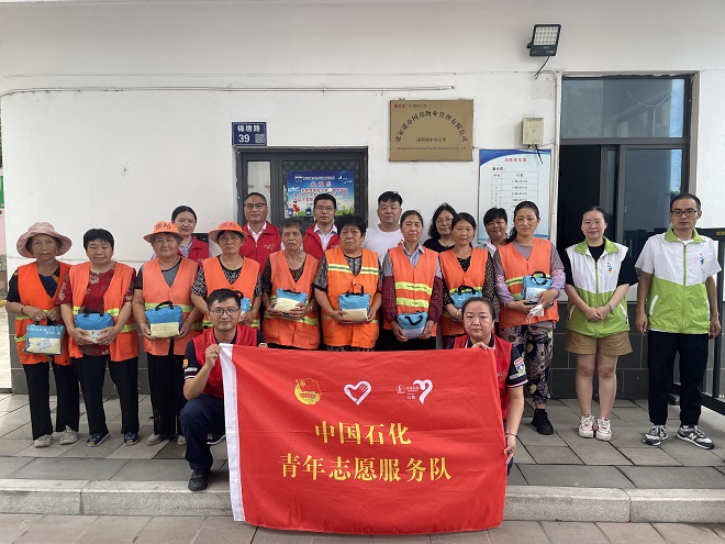 为切实做好职工防暑降温工作,关心辖区居民身体健康和生命安全,7月24日,锦丰镇滨江社区团委联合中化石化青年志愿服务队来到辖区内开展了“ 安康在滨江 关怀沁人心”夏送清凉活动,为高温下仍坚守工作岗位的从业人员,送上了防暑慰问品。
