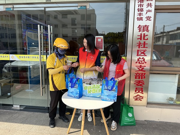 炎炎夏日,骄阳似火。连续高温天气给户外劳动者带来了严峻“烤”验。为推进对新就业新业态群体工作,扩大团在新兴领域的凝聚力和影响力,7月20日下午,镇北社区团委联合社区工会联合会、“齐‘新’协力”学习社组织开展“用‘心’举措关爱‘新’群体”主题活动,为忙碌在一线的外卖员、快递员、环卫工人等新业态群体送去一丝清凉。