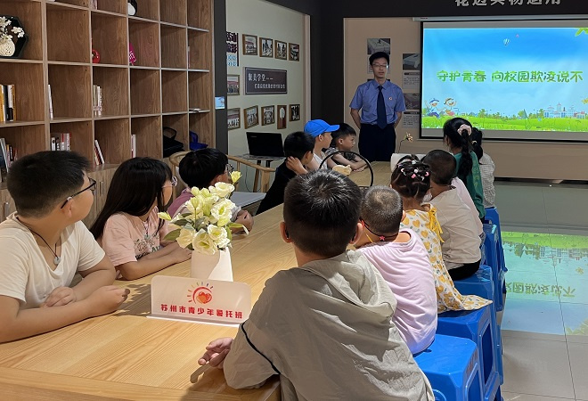 为进一步增强辖区青少年的法律安全意识,常熟市碧溪街道万福村团支部以开展青少年暑托班为契机邀请市检察院法律科普志愿者于2023年7月18日上午在万福村新时代文明实践站开展了青少年反校园欺凌知识宣讲活动。