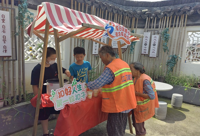 炎炎夏日,为继续丰富“七彩的夏日”未成年人精神生活,培养未成年人心灵美,同时给工作在一线的环卫工人带去一份清凉,7月25日,常熟市辛庄镇吕舍村团支部组织辖区未成年学生开展夏日送清凉主题活动。