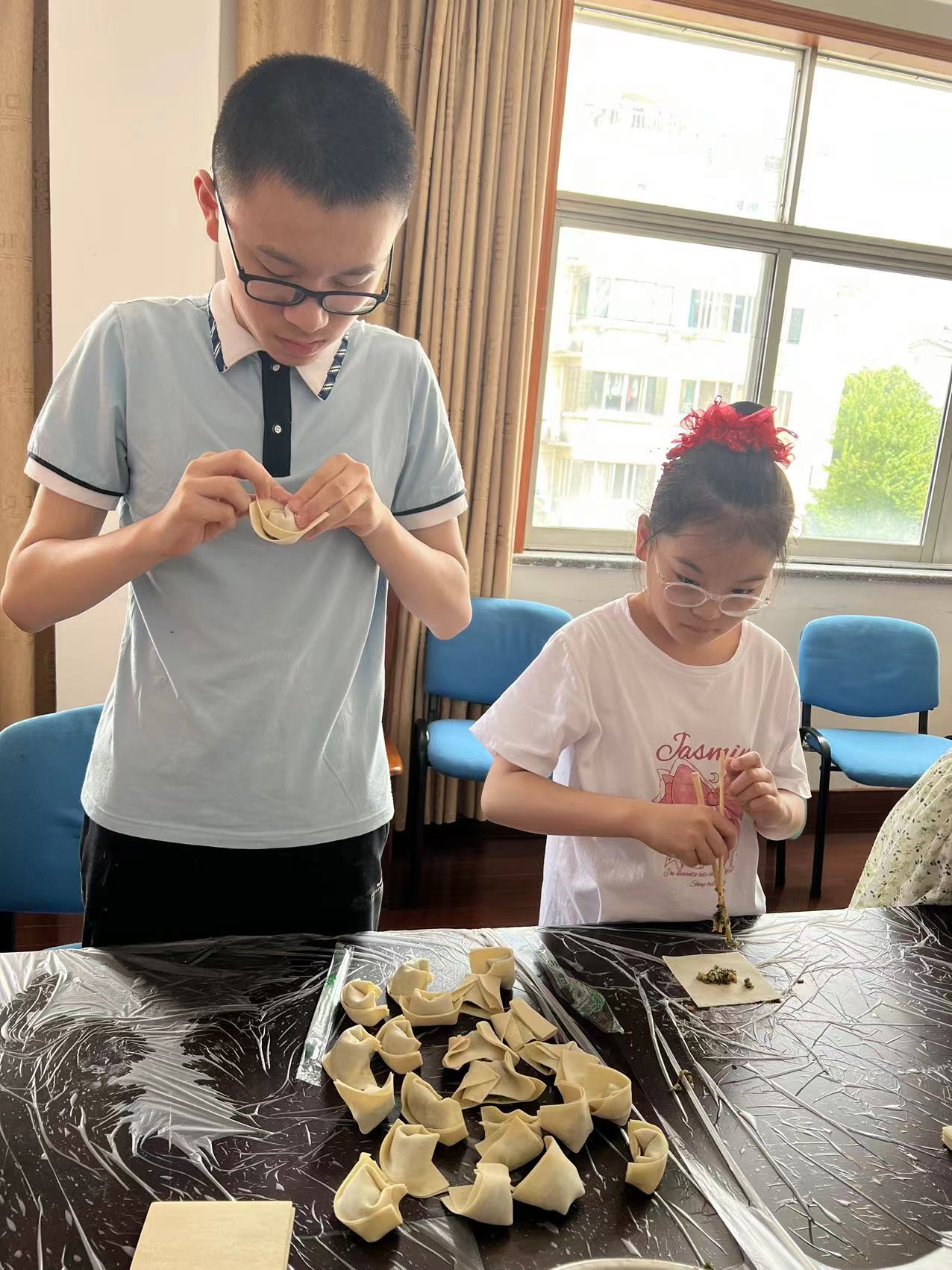 为了培养孩子们的基础生活能力,提升动手能力,花苑社区暑托班开设实践课堂,以“巧手包馄饨,劳动促成长”为主题进行实践活动。