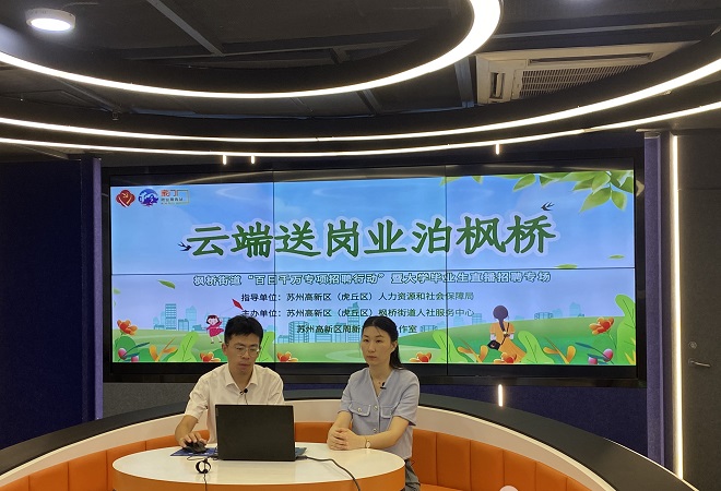 为抓住高校毕业生就业工作关键期,全力做好辖区未就业高校毕业生的就业促进工作,7月14日,苏州高新区枫桥街道团工委联合多部门举办“云端送岗 业泊枫桥”百日千万专项招聘行动暨大学毕业生专场直播招聘,4家企业拿出了50多个岗位,共200余人在线观看。