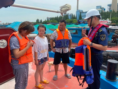 当日,青年志愿者来到长江太仓段船舶流量最大的通江河口杨林河口,利用联合工作站滚动显示屏滚动播放安全提醒,并登上船头发放宣传手册,广泛告知非船员随船的安全风险,劝导船方减少不必要的随船行为,自觉做到“非必要,不随船”,提高船员及随船人员的安全意识。开展“救生衣”行动,对于非船员确需随船的,告知船方要严格落实船员以外人员随船的相关安全措施,督促船上随船人员必须规范穿戴救生设备并尽量避免前往易落水区域。