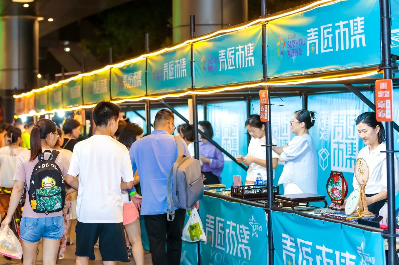 现场还设置了多个打卡点以及主题市集,让大家可以尽享美食、美景。在洒满金辉的太湖蓝跑道上,在灯火通明的市集里,总能找到属于自己的节奏。市集区域新增青匠市集,串珠、苏绣、核雕等非遗手工艺品的精巧绝伦、匠心独运被苏州的青年匠人们展现的淋漓尽致。