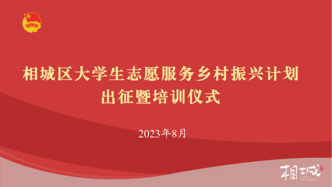 为深入贯彻落实县域共青团基层组织改革,凝聚青年力量助力乡村振兴、融入基层治理,8月9日,相城团区委举办2023年相城区大学生志愿服务乡村振兴计划出征暨培训仪式。团区委副书记(挂职)卫冉、用人单位分管领导和13名新到岗的志愿者参加会议。