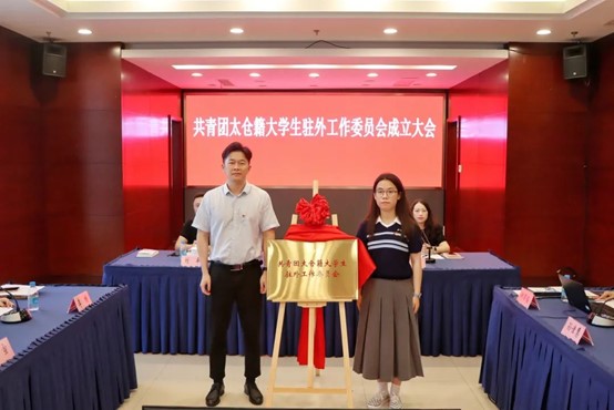 团市委书记周骏、太仓籍大学生驻外团工委书记孙佳慧共同为太仓籍大学生驻外团工委成立揭牌。