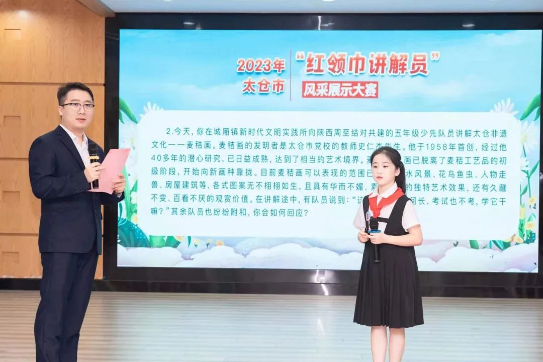 为深入学习宣传贯彻党的二十大精神及习近平总书记关于少年儿童和少先队工作的重要论述,结合上级少工委工作安排,引导少先队员在有组织、有计划的“红领巾讲解员”实践体验活动中,从小坚定听党话、跟党走的决心,自觉增强对习近平总书记的爱戴、对新时代伟大成就的自豪、对社会主义现代化美好前景的向往,争做拥有“四个自信”的好队员。2023年太仓“红领巾讲解员”风采展示大赛现场决赛在太仓市经贸小学幸福剧场顺利举办,苏州团市委副书记蒋妍、学少部部长平雪雅、少先队总辅晏赛君,太仓团市委书记周骏共同参与此次活动。快来跟着团团一起回顾下活动现场吧!