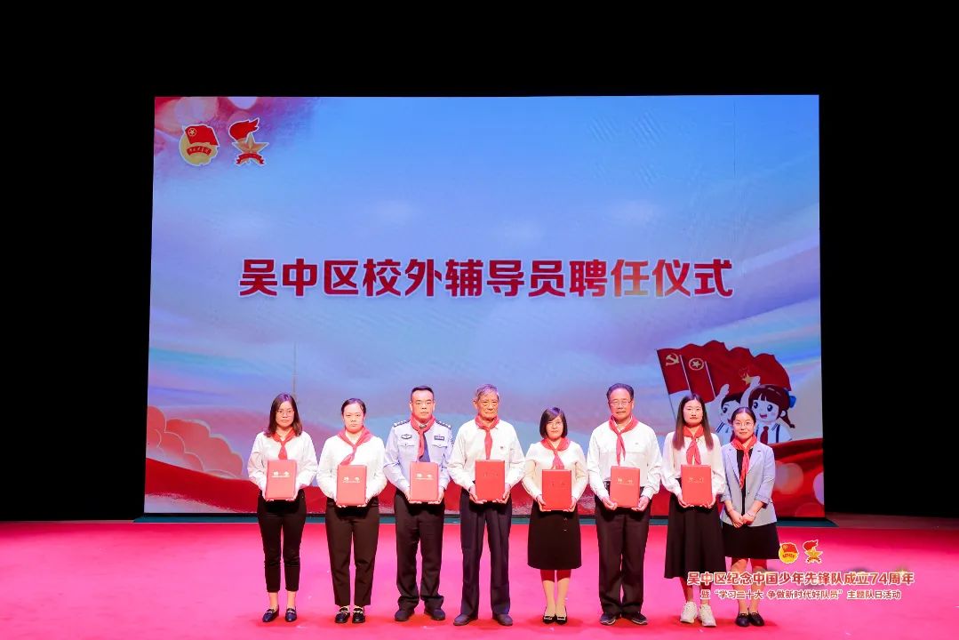 活动上,举行了吴中区校外少工委授旗仪式。吴中区成立了保圣社区、国泰社区等14家社区少工委,组织开展“小小网格员”“社区小主人”等实践活动,培养青少年主人翁意识,助力基层治理。多方发力、多点开花,为少先队员营造幸福的少先队社会化生态圈,更为家长们送上一份假期没烦恼的“官方带娃攻略”。