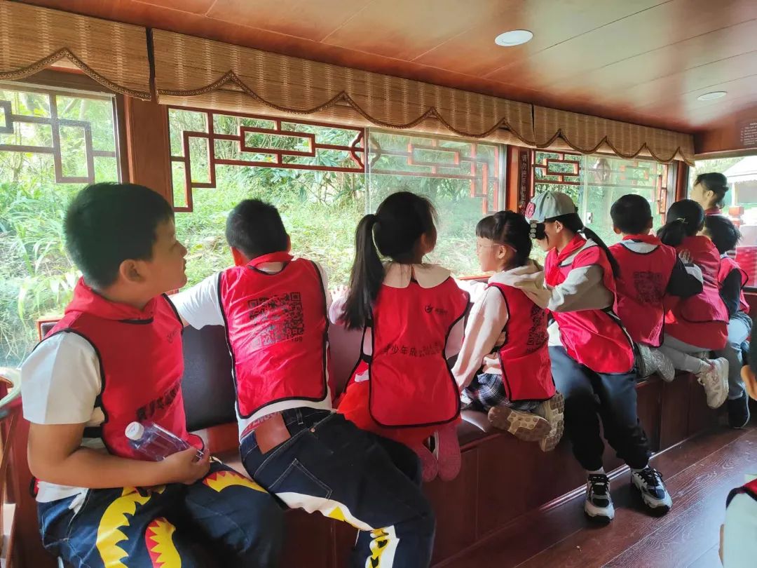 银杏码头畔,研学小队有序登船,泛舟水上,在林下穿过幽幽水径,远离喧嚣与浮躁,身心被葱茏绿意包围,在浮光竹影间感受大自然的美丽。停船靠岸,孩子们迫不及待地交流所见所学。