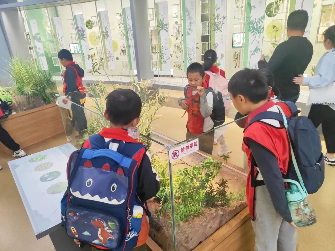 研学小队首站来到湿地公园科普馆。这里集湿地科普常识、文化展示、动植物展示于一体,采用多媒体控制技术与艺术场景相结合的方式,打造智能化湿地胜境。孩子们通过VR、听筒,寻找散落在湿地里的小动物,与“生物”沉浸式互动,感受神秘莫测的自然世界。