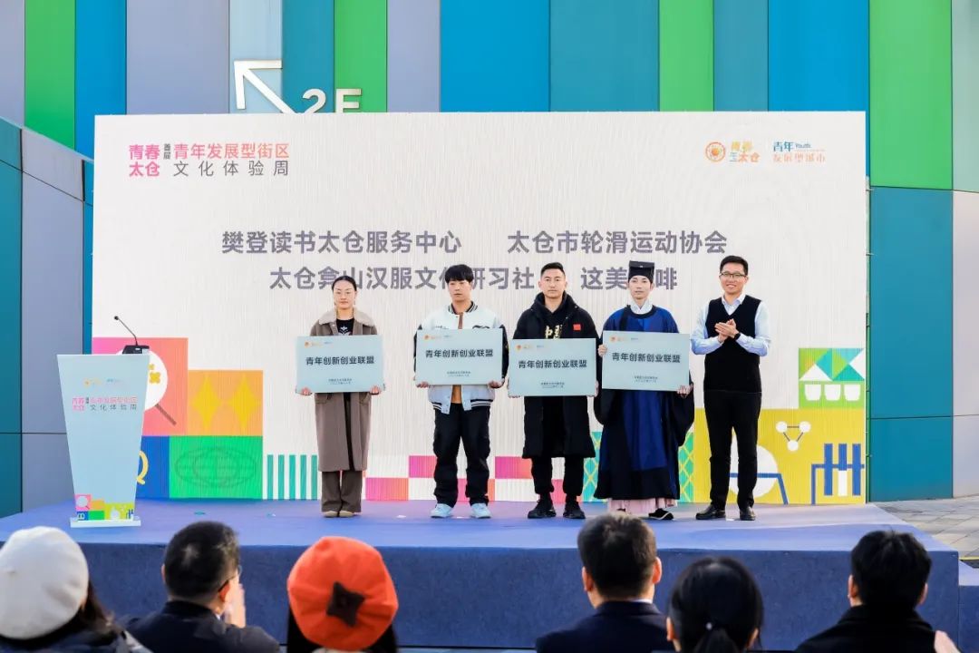 本次活动上,刘飞、倪嘉臻、龚迪、汪倩倩、金丽萍、杨冬梅、宫健、吴建洪、刘佳共同启动本次青春太仓“青年发展型街区”文化体验周。