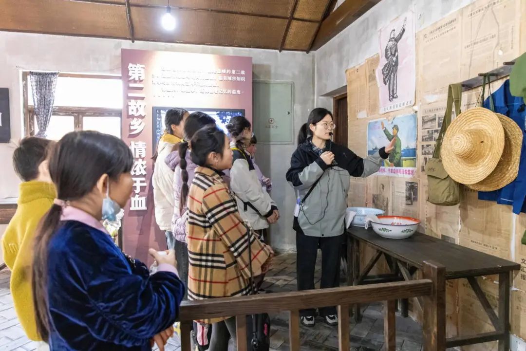 “在1969年冬,公社召集约4000人用了两个月的时间进行围湖灭螺,就此影响这里村民健康的疾病彻底消除了......”在“知青艺术公社”展厅一,“小知青”们认真聆听了上世纪下乡插队的知青们与当地村民一起艰苦奋斗的峥嵘事迹,观看光荣事迹陈列展,直观感受不同时代背景下群情激昂又感人至深的情谊,体会知青们真挚、坚韧的奋斗精神。来到展厅二,“小知青”们分成两排坐在桌前,跟随讲解员的指引观察叶片的纹理,感受大自然的鬼斧神工。