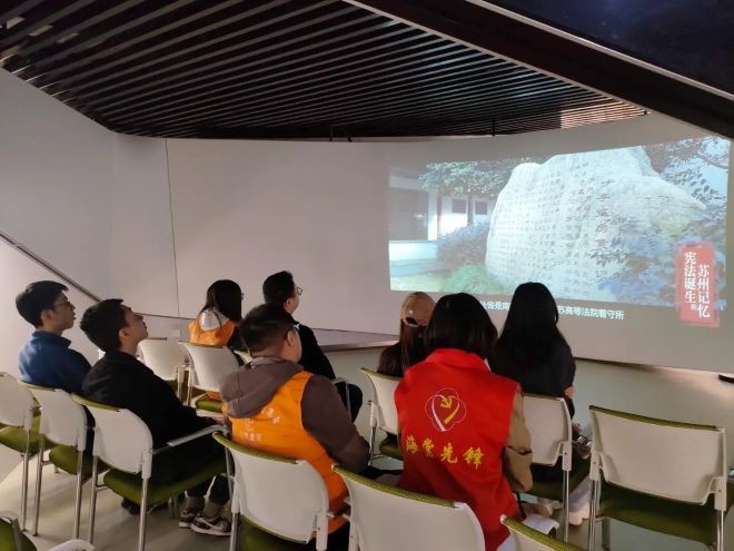 活动当天,水漾花城社区党支部、水漾花城社区团支部带着团员们一同前往苏州市宪法宣传教育馆参观学习。参观过程中,团员们认真聆听讲解,积极参与互动交流。他们对宪法的诞生、发展和不断完善的过程有了更清晰的认识,他们深刻认识到,宪法是国家的根本大法,是治国安邦的总章程,是维护国家安全和社会稳定的重要保障,也更加明确了自己作为共青团员的责任和使命。
