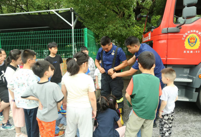 “第一天来上课就看到了消防车,还穿上了消防服,感觉今年暑假会很精彩!” 近日,由苏州市姑苏区吴门桥街道团工委开办的姑苏悦龄综合为老服务中心暑托班正式开课,姑苏区消防大队苏站路消防救援站的消防员将消防车开进暑托班,为暑托班的青少年带来精彩生动的“暑期第一课”。