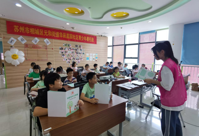 暑期来临,为缓解青年职工家庭未成年子女暑期照护难的现实痛点,引导和帮助辖区青少年度过一个安全、快乐、有意义的假期,7月8日上午,相城区元和街道华辰嘉园社区乐享“辰”光暑托班正式开班。