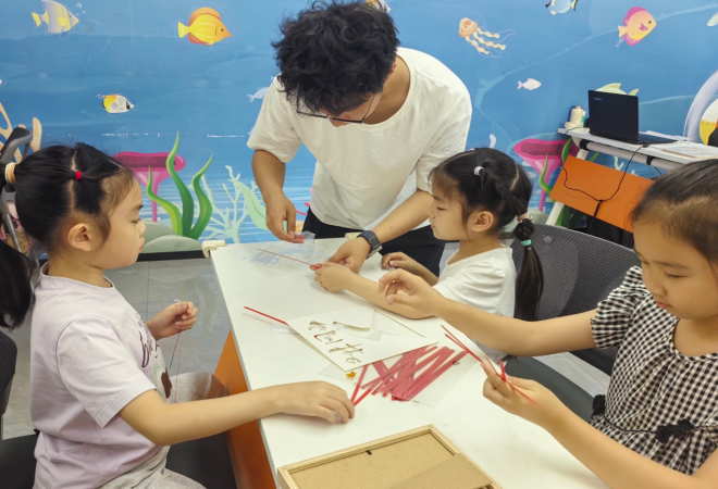 首先,老师为青少年们详细介绍了竹编的悠久历史与文化内涵,以及其在日常生活中的广泛应用,让大家对这项古老的手工艺有了更深入的了解和认识。接着,团员志愿者亲自示范了竹编的基本技法,每一步都耐心讲解。在志愿者们的指导下,大家纷纷动手尝试,他们聚精会神地操作着,从生疏到熟练,逐渐掌握了竹编的基本技巧,将一根根普通的红色竹篾,通过灵巧的双手编织成各式各样的图案。老师将红色元素融入竹编作品,如红色的中国地图,天安门广场,飘扬的国旗等,以此表达对军人的敬意和祝福,激发社区青少年的爱国之情。经过社区青少年的精心的制作,一件件充满创意与情感的红色竹编作品逐一呈现,每一件作品都凝聚着参与者的心血与汗水,更承载着对军人的深情厚谊。