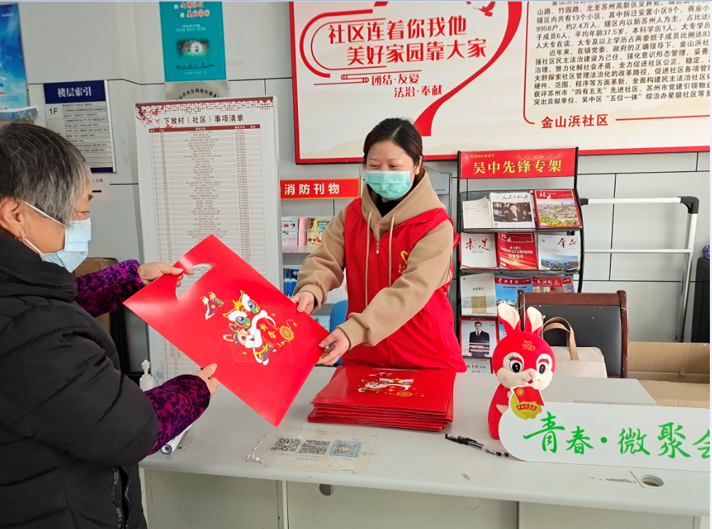 木渎镇金山浜社区团支部开展迎新春送福袋活动