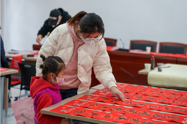 1月7日上午,甪直镇鸿运社区团支部邀请到了吴中区书法家协会的秦志坚老师、郑颖老师、陈清老师共同开展了以“春到鸿运 玉兔送福”为主题的写春联送祝福活动。老师们齐聚在鸿运社区新时代文明实践站为居民们写春联、送福字,有预先写好的成品,也有现场“量身定做”的。孩子在现场有的提起笔,跟着写;有的选好想要的祝福,乖巧等待。经过短短两个小时,40余副春联就已经全部送出。现场一片欢乐,充满浓浓的年味。