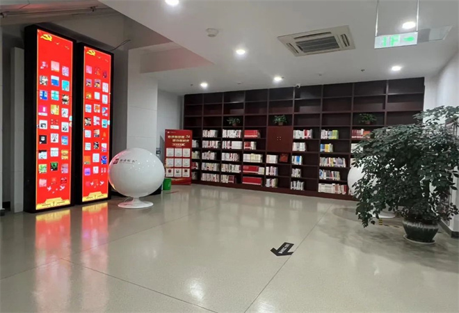 在书香大厅中,设立红色主题展,为青年读者开展咨询服务。在青年活动室中,团委定期开展原创红色剧本杀《红焰》等“场馆+”沉浸式红色研学活动,以常熟党史故事为原型,结合换装、空间打造、音视频辅助,组织局团委各支部开展身临其境的爱国主义主题教育。在红色主题馆和青年小剧场,展示了习近平新时代中国特色社会主义思想重点图书,通过开展青年读书会、初心课堂、青年思政课等主题宣讲活动,不断加强团员青年的理论学习。