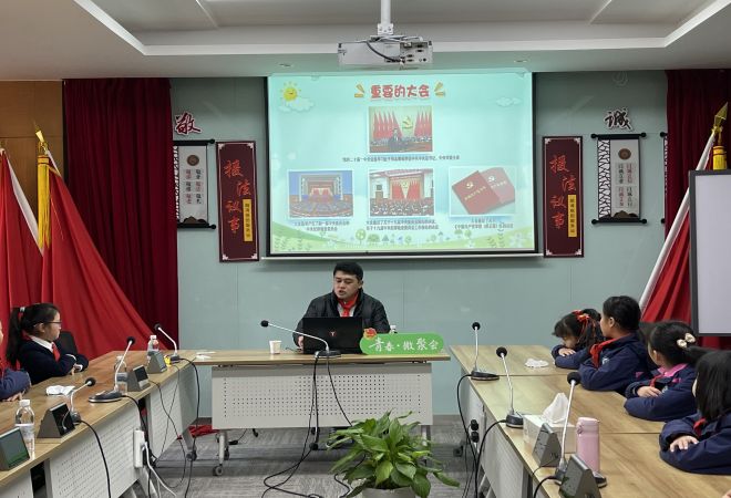 华师大苏实小尹旭老师向队员们热情宣讲祖国在过去十年取得的成就,从中国高度、中国深度、中国跨度、中国速度、中国精度、中国力度等方面无不在展现着大国力量。尹老师通过图片、视频引出问题,少先队员们踊跃发言,现场气氛热烈,宣讲内容虽然广博宏大,但通过尹老师深入浅出的介绍得到了很好的理解。
