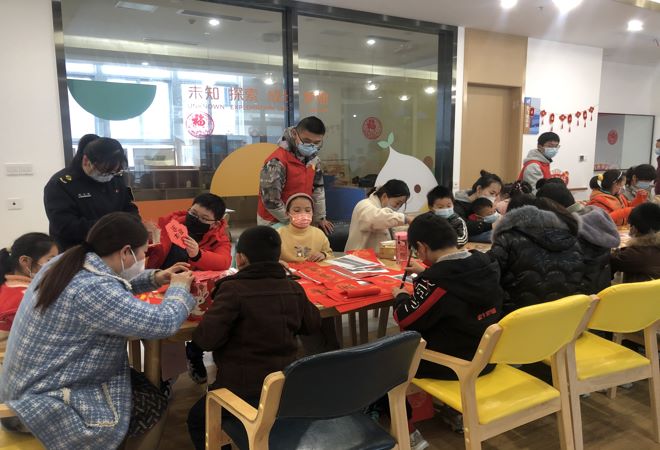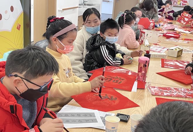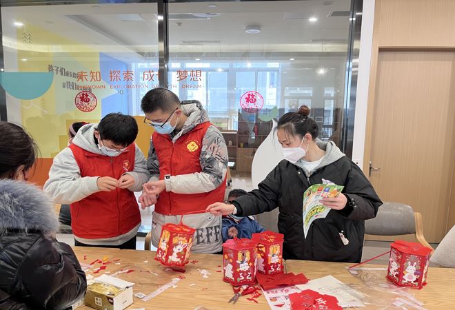 按照春节的传统习俗,灯笼象征着喜庆,“福”字寓意着幸福。活动开始,志愿者为现场19组新市民家庭介绍了灯笼的由来和典故,在制作过程中青少年们相互帮助,仔细想,认真看,既增强了动手能力,又感受到了参与、创造和合作的快乐!随后青少年们在红纸上提笔、顿笔,一笔一画写成了一个个,大大的“福”字,贴上自己亲手写的“福”字,来年一定能福气满满、福运滚滚。