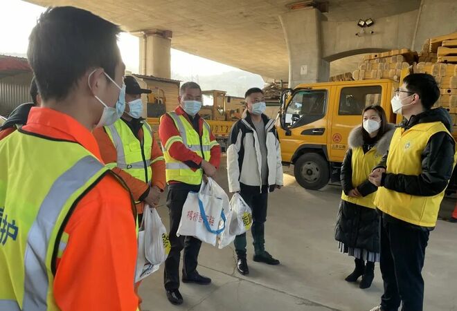 1月3日下午,苏州高新区团委联合枫桥街道团工委携带防疫茶、消毒液等防疫物资来到高通路桥公司走访慰问货车司机,慰问组与货车司机及家庭成员进行亲切交谈,详细了解他们的家庭、身体和生活情况,叮嘱货车司机们做好假期安全驾驶及个人防护。并表示,希望货车司机朋友们有困难可以找团委求助,团委将全力为大家纾困脱困。