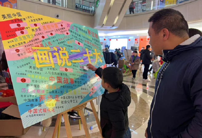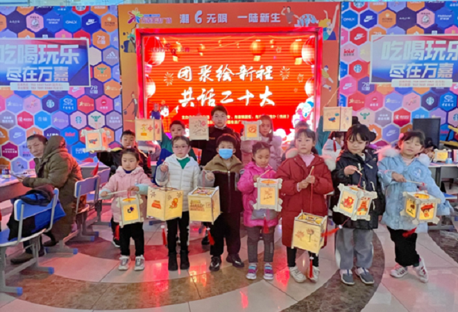 活动现场,热闹非凡,30组“新”青年家庭紧扣新征程、团结奋斗、人与自然和谐共生、乡村振兴、美丽中国、中国故事等党的二十大热词在空白灯面的灯面上进行书画创作。以笔抒情,以画传情,一个个灯笼在灯光的映衬下栩栩如生,党的二十大精神在“新”青年中“活”了起来。