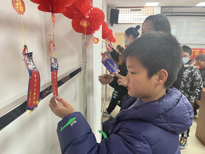 猜灯谜是元宵节必备的民俗活动,随着志愿者的讲解,充分调动了孩子们的竞争意识,跃跃欲试的他们在志愿者宣布猜谜开始的话音刚落,就争先恐后的猜起来,“平安”、“幸福”、“快乐”、“文明”----一个个谜底在孩子们的笑声中揭出,他们也收获到了元宵节最后的奖品——小汤圆,回家与父母品尝。