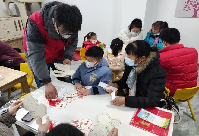 活动开始,工作人员通过动画讲解、互动提问的方式,向青少年介绍了不用湿手触碰电器的防火防电知识、避免陌生人闯入家中的居家安全知识、外出时遵守交通规则的交通安全知识、出门佩戴口罩的疫情知识等;并结合二十四节气,共同学习了大寒起始、气象变化、物候观象、传统习俗等“大寒”节气知识,帮助少年们明白了时节更替、四季轮转所带来的变化。随后,在工作人员的指导下,青少年们共同制作了兔子灯。粘一粘、拼一拼、绕一绕,一盏盏可爱的兔子灯就制作完成了,少年们提着自己亲手制作的灯笼向大家展示成果,脸上洋溢着幸福的笑容。