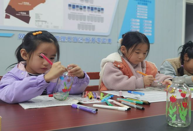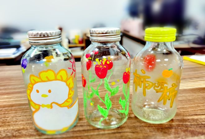 活动开始,志愿者以“玻璃饮料瓶属于什么垃圾”为引,引出环保绘画主题。志愿者通过展示部分旧物改造的作品,帮助青少年进一步感知艺术的魅力。随后,少年们纷纷拿出今天的“主角”材料——玻璃瓶,进行创意绘画设计。平时活泼好动的小“神兽”们,如今均成了小小创意家,发挥天马行空的创意想象力,将五颜六色的颜料涂抹瓶身,精心装扮着自己的“宝贝”,一个个忙得不亦乐乎。在一次次奇思妙想的碰撞下,这些瓶子迎来华丽“变身”,成为创意十足的调料瓶、花瓶等环保手工作品。少年们在小小的瓶身上尽情施展着艺术的魔力。