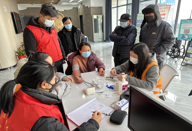 活动中,志愿者们为每一位前来的老年人免费提供测量血压、测血糖、健康咨询等服务,耐心地询问老年人身体状况,解答老年人的疑问,并细心地记录问诊信息。针对有高血压、高血糖等基础疾病的老年人,志愿者们给予老人们生活饮食、健康监测等方面的建议,叮嘱大家做好日常健康的预防工作,并引导老年人正确就医。针对春节期间外出时,提醒老年人要正确戴好口罩,做好防护工作,防止发生感染新冠。