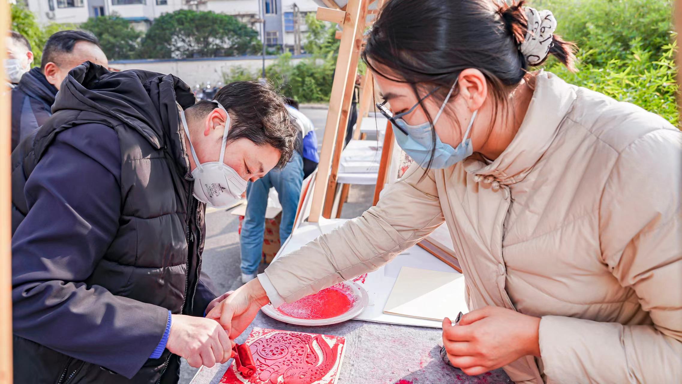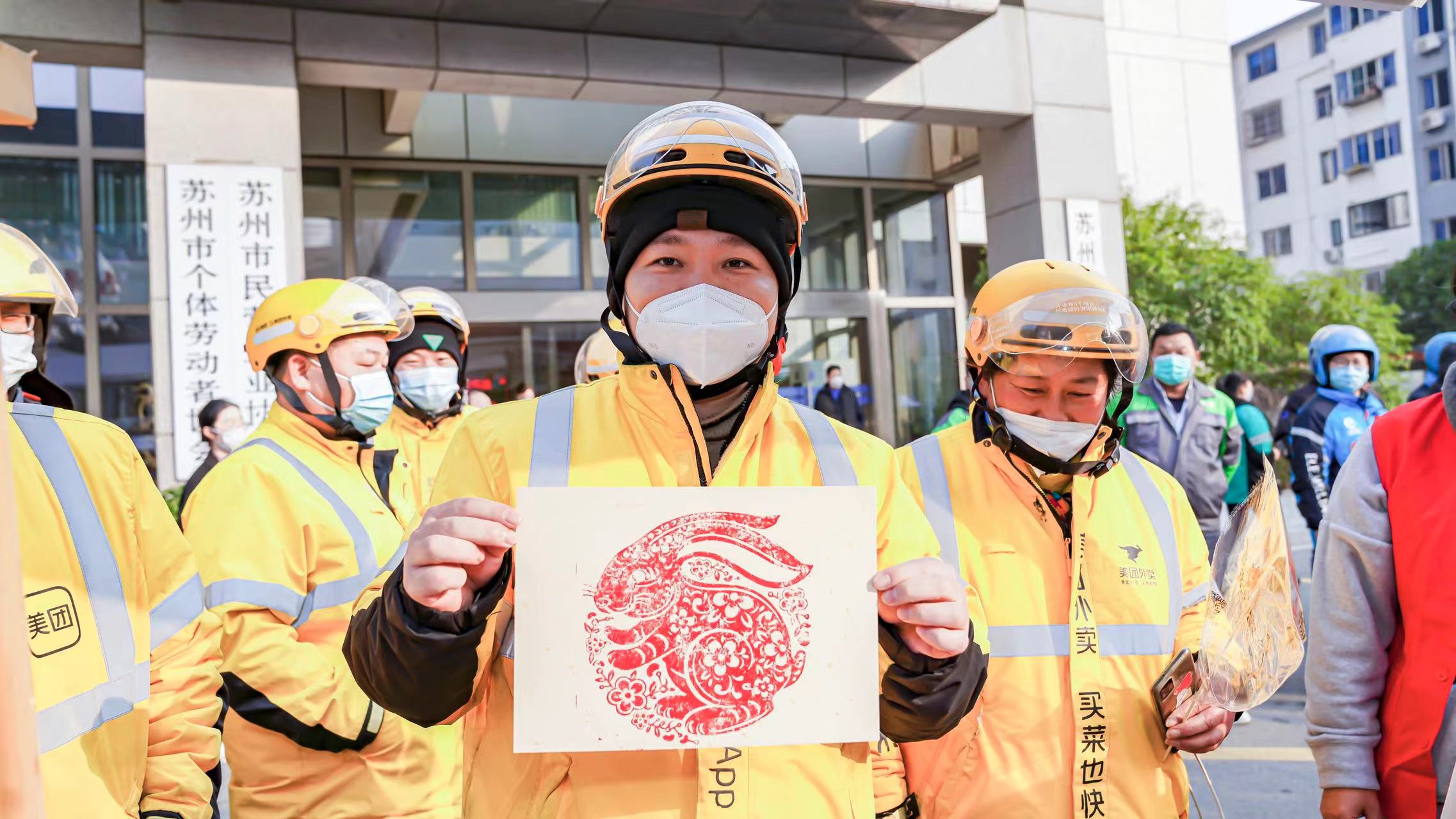 现场,设置了木刻年画拓印和糖画体验活动,邀请新业态新就业青年共同体验。通过亲身体验,了解苏州传统文化魅力,将浓浓的年味和暖意送到外卖小哥的心里,同时传承推广苏州青年手工艺匠人传统工艺,加深青年手工艺匠人与新业态青年群体的沟通交流。