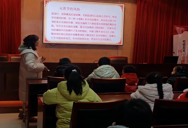 社工郑老师首先给孩子们讲了我们读书会的学习公约:准时参加、高效快速、奖优罚劣以及分享交流,并学习了关于元宵节的祝福金句,介绍了元宵节的来历和风俗,比如吃汤圆、猜灯谜、踩高跷、耍灯笼、舞狮子等等。