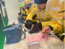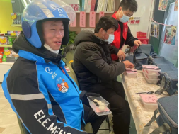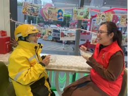 “青春心向党,奋进新征程”、“新年新气象,元宵节快乐哦”、“在平凡的岗位创造不平凡,2023,加油!”……一张张由青年志愿者特别手绘的祝福贴纸伴随着暖心汤圆一起送到外卖员的手中,开心的笑容洋溢在“小哥们”的脸上。