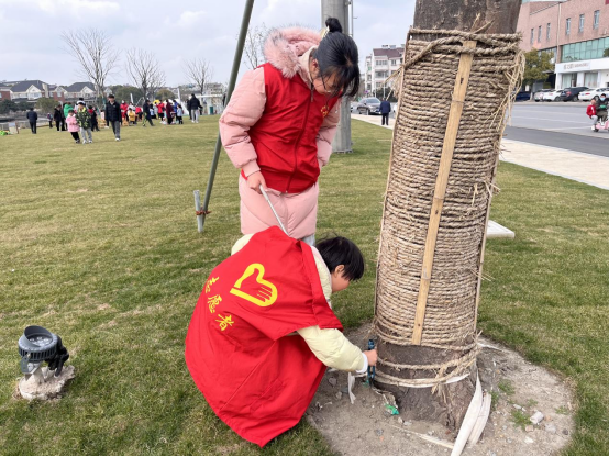 温暖的阳光照耀在十字漾的草坪上,身穿红色马甲的“河小青”志愿者们,手拿钳子、扫把等清洁工具捡拾沿河步道和草丛的烟头纸屑等垃圾。大手拉小手,“河小青”小志愿者的身影在草坪上穿梭,呼吁往来行人文明观景,保护河道共创美好家园,争做先行者、实践者和守护者。青年志愿者们还为小朋友和家长们上了一堂“青春自护·有你有我”户外教育课,切实提高青少年群体安全意识和避险自救能力,守护青少年身心健康。