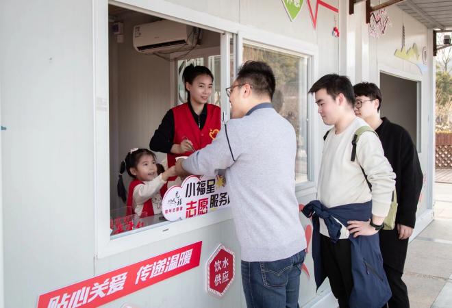 香雪海景区门口广场上,由核酸采样亭改造而成的香雪红驿站十分特别,吸引了不少游客驻足。光福镇小福星志愿者们正为游客免费提供游览导览和酸梅汤等暖心服务。“这个服务好!今天天气有点热,喝杯酸梅汤挺解渴的。”两位来自上海的游客边喝边点头称赞。