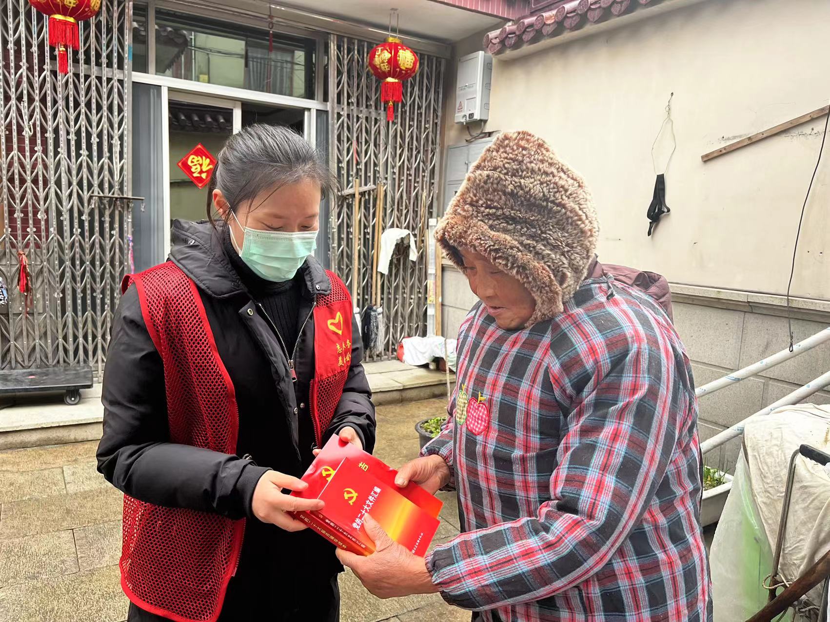 青年志愿者来到行动不便老党员家中,为他们送去《党的二十大文件汇编》、《党的二十大报告学习手册》、口罩等冬训“助学能量包”,进行一对一诵读党史、与居民交心谈心、交流学习心得,促进党员学习全覆盖,推动党的二十大精神在基层进一步落实。老党员姚世源说:“我自己虽然年纪大了,眼睛不太好了,但是我一定好好研读学习资料,把党的二十大精神学好学透,保证思想不落后!”除了送书送学,还送上党组织的关怀温暖,详细询问老党员的身体健康状况和生活情况,认真听取老党员对社区工作的意见建议,让他们积极为社区今后的发展建言献策,并且鼓励他们积极学习宣传贯彻党的二十大精神,继续发挥老党员余热。