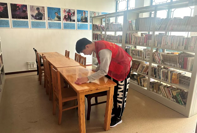 活动中,在社区工作人员引导下,身穿志愿者红马甲的学生们先后参加了卫生大清扫和社区图书管理。在卫生大清扫服务中,志愿者们对社区周边的烟头、果皮、纸屑等进行了清理。在社区书屋的图书管理中,志愿者们根据图书种类、大小进行了分门别类的整理,并将社区书屋中的桌椅、书柜进行了清理。