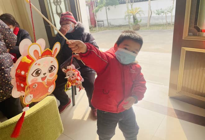 接着志愿者向村民介绍了兔子灯制作流程、注意事项。制作过程中,大家兴致勃勃,认真搭建兔灯框架,现场不时传来阵阵欢声笑语。经过共同努力,一个个漂亮的兔形灯被制作出来,看着自己的作品,大家满脸都洋溢着喜悦和自豪。在活动接近尾声的时候,志愿者变戏法似的搬出一大锅汤圆,热气腾腾的汤圆温暖了青少年们的胃,也甜蜜了青少年们的心。