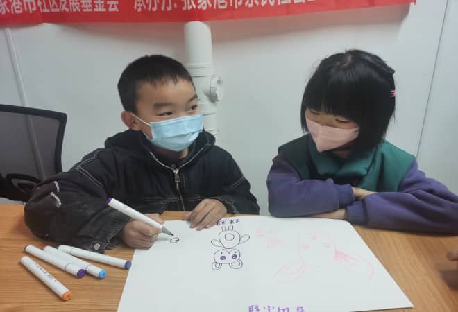 首先,志愿者向大家介绍了小组活动的主题与目标,以及每节活动的主要内容,鼓励大家全程参与小组活动。通过游戏“招牌动作”让大家进行了相互认识,以游戏“大风吹”把青少年们分成了4个小组。通过“小组自画像”让小组组员进行组内讨论,为自己的小组取名,同时在大白纸上画下组员的自画像,写上朋友们称呼自己的名字。接着志愿者引导大家商定小组契约与积分规则,热情满满。之后便开始了大家最期待的制作网红热奶宝环节,甜筒配上淡奶油,加上紫米、芋泥,最后撒上自己喜欢的小料,草莓,火龙果、肉松、奥利奥碎、蔓越莓干等等,完美复刻网红热奶宝,迫不及待的想品尝。志愿者要求大家把两个带回去的热奶宝分享给自己社区里的好朋友,大家对于本次活动都觉得非常开心能够与其他小朋友一起玩。