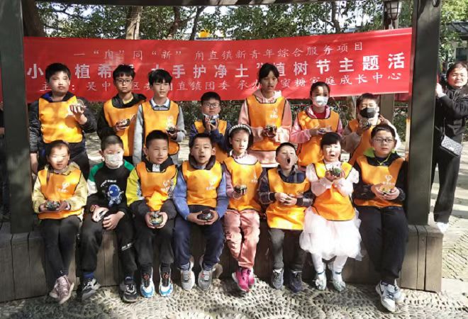 为了激发青少年儿童保护树木,爱护绿植的热情,提高环保的文明意识,在植树节来临之际,结合雷锋月主题,甪直镇团委联合保圣社区青年之家组织“蒲公英计划”服务对象等16组亲子家庭开展“小手植希望 大手护净土”主题护苗行动。