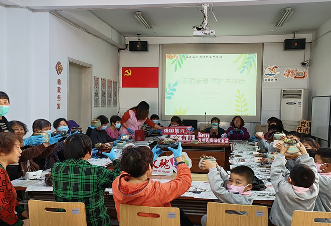 在植树节这特殊的节日,绿色种植是一种很好的生命教育形式,既让辖区居民们和果果幼儿园的小朋友了解绿植与人类的亲密关系,也增强了居民的绿色环保意识。