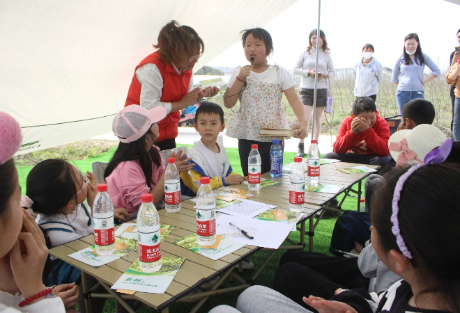 踏春出游,共赴与春天的约会。在忙碌的学习、工作之余,同学与同学、孩子与家长之间也应多些共处的时光。借植树节的机会,团员志愿者们带大家一同参观了久硕家庭农场,在露营基地开展了趣味的互动游戏——逛三园。团员志愿者与同学们互相交流分享了自己认识的植物、动物、水果,并开展手脚并用小游戏,同学们分组PK,团员志愿者在旁引导协助,既锻炼了同学们反应力、专注力和协调性,又增进彼此的感情。
