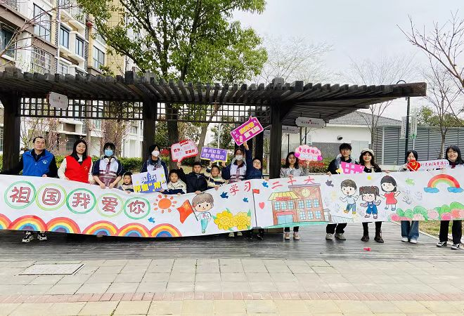 3月19日下午甪直镇陶浜社区团支部联合苏大医学院的青年学子们在陶浜花园开展了一场“青春社区行,共画二十大”社区青春行动主题活动。