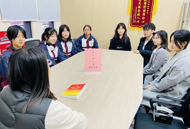 有朋自远方来不亦说乎,活动的最后大家走进了陶浜社区的会议室开展了一场青年座谈会。社区筹备组组长李晓燕同志为了迎接苏大医学院学子们的到来,特意准备了应季的特色糕点—青团来招待大家。很多北方的同学对于这个糕点非常陌生,李晓燕同志热情的进行了介绍,顺势进行了一番甪直传统文化输出,从青团制作的时节原料到制作方式事无巨细,听得同学们连连点头,颇有一股想要自己尝试制作一番的冲动。俗话说一千个读者就有一千个哈姆雷特,苏大的学子们来自五湖四海,品尝完特色糕点大家就社区治理开展了一次头脑风暴,从“00”后角度切入,为社区治理注入新想法、新动力。李晓燕同志首先将社区实际给大家进行了简要描述,抛出了高校学生、“00”后心目中的理想社区,以及作为青年一代我们能为社区治理做些什么等话题,让大家畅所欲言。有的同学分享了自己家所在社区的优秀做法;有的同学畅想了自己所学的医学专业将来就业之后能为社区做的贡献;还有的同学提出我们可以从社会实际出发多多关爱老年群体……不一样的成长环境造就了不一样的我们,李晓燕同志说:“思维只有碰撞才能产生火花,感谢你们为陶浜社区的治理所提出的宝贵意见。在接下来的工作中我们将不断创新,多多融入青春血液、青春思维。”