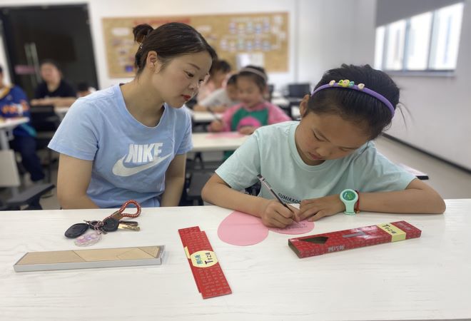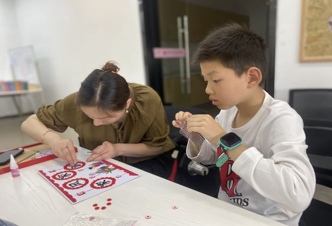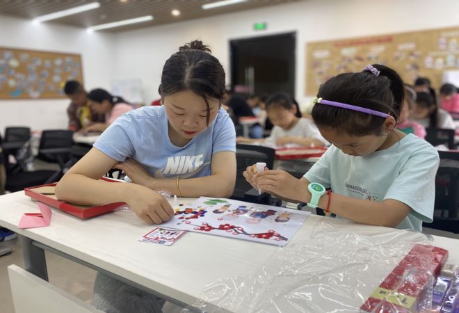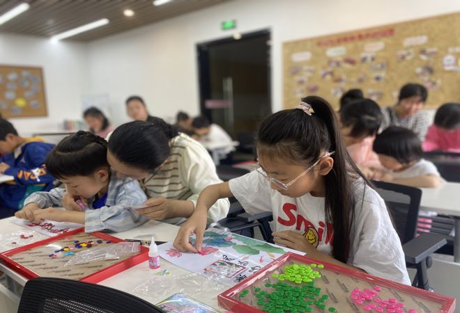 活动开始,工作人员依托青少年们熟悉的《孔融让梨》的故事来帮助他们了解日常生活中的家风之事。通过前期共阅《习近平走进百姓家》此书开展交流分享,鼓励青少年分享家庭感人故事或生活幸福变迁之事。当家风家训月遇上母亲节,工作人员专门设置了“爱的默契”“爱的表达”环节,以游戏你比划我来猜考验亲情默契,同时邀请青少年将自己想对母亲说的话写在爱的便签上,并引导他们打破平时的羞涩,大声呼出“爱”。活动最后,工作人员带领少年们进行纽扣画DIY,指导他们用彩色纽扣粘贴“家风家训画、尊老爱亲、家风有我传承”等系列画,进一步深化家风家训观念。