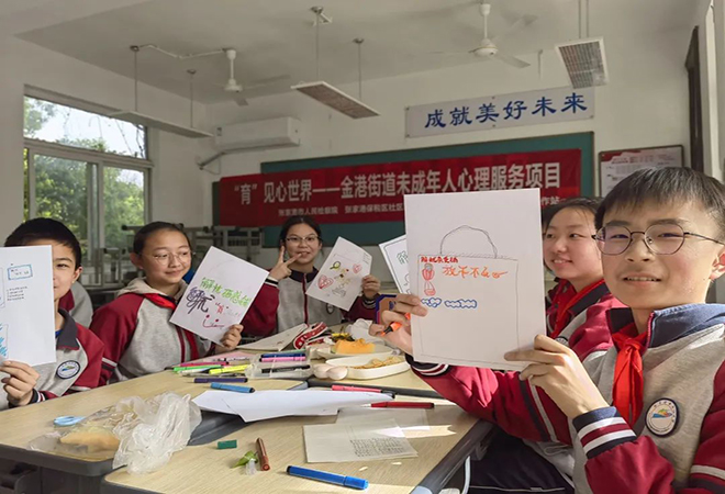 基于此,为进一步全方位保护青少年的身心健康成长,辅助学校的心理健康工作,金港街道团工委联合乐朵社工在南沙中学试点开展“解忧砸惑铺”朋辈辅导计划,利用初中生喜欢新奇、仪式感的特点,通过“店铺运营”的方式,触发学校青少年主动倾诉动机,培育学生学会倾听的能力,从而达到朋辈携手共进、获得阳光积极的心态、促进青少年健康成长的目的。